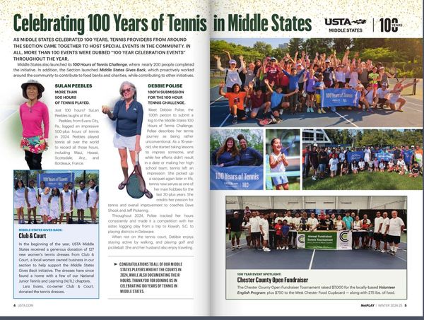Featured in USTA Middle States 100 Years- NetPlay Magazine -Winter 2024/25